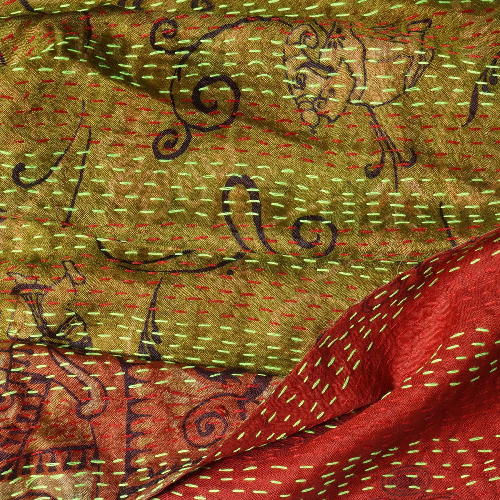 This kantha scarf is made with 2 layers of fine material overstitched by hand in straight lines with different coloured threads.