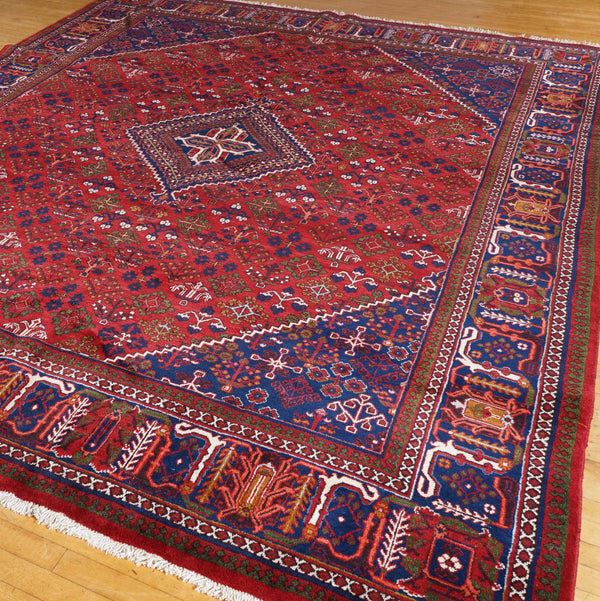 Fine Joshagan Carpet, NW Persia Joshagan rugs are known for their geometric designs, often featuring a diamond-shaped medallion on a red field with stylized floral motifs, and deep blue borders. These hand-knotted rugs are highly prized for their quality and artistry. ...