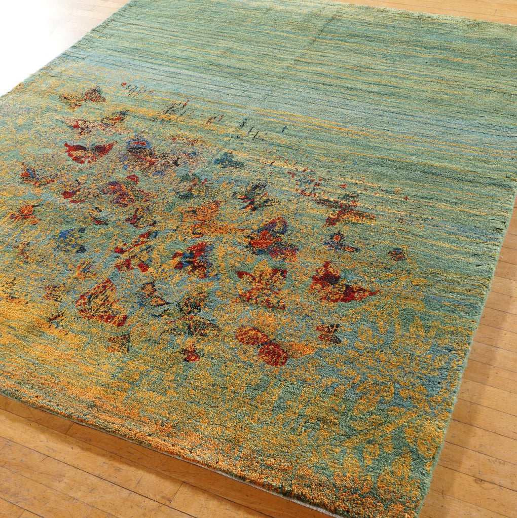 Within the tradition of tribal gabbeh weaving, this is a contemporary design with stylised and abstract natural details, including butterflies!.