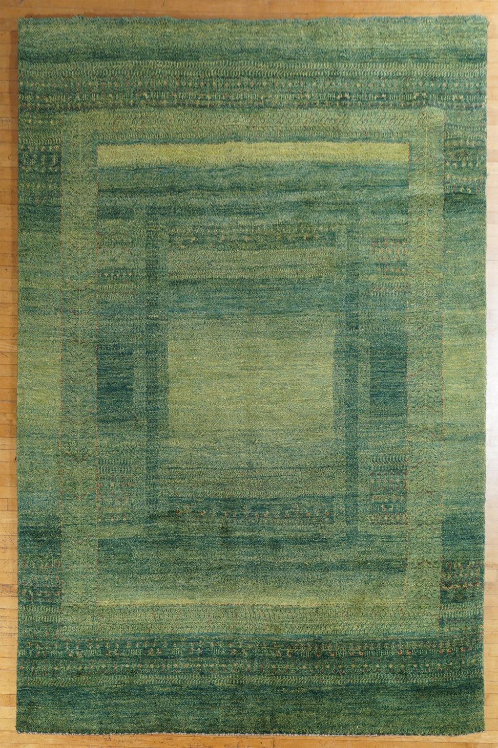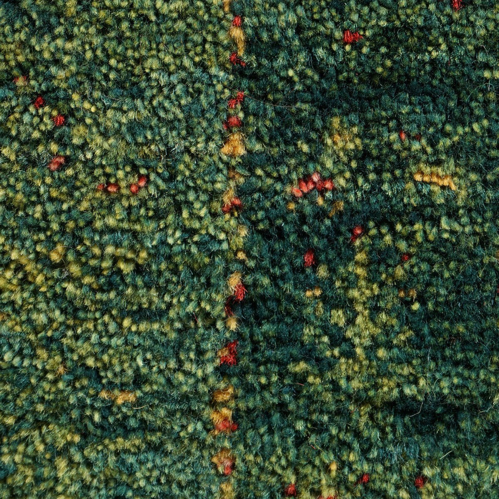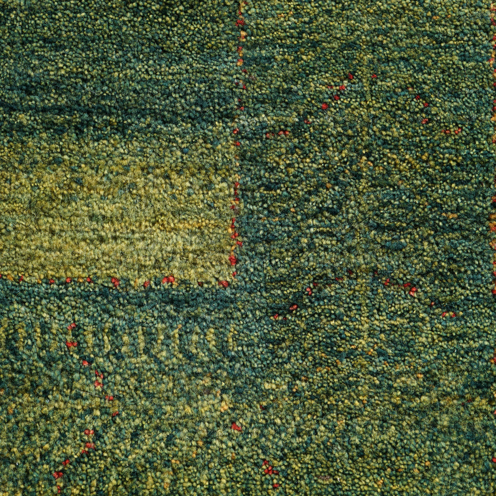 A stunning, large natural green gabbeh carpet, with a subtle abstract pattern.