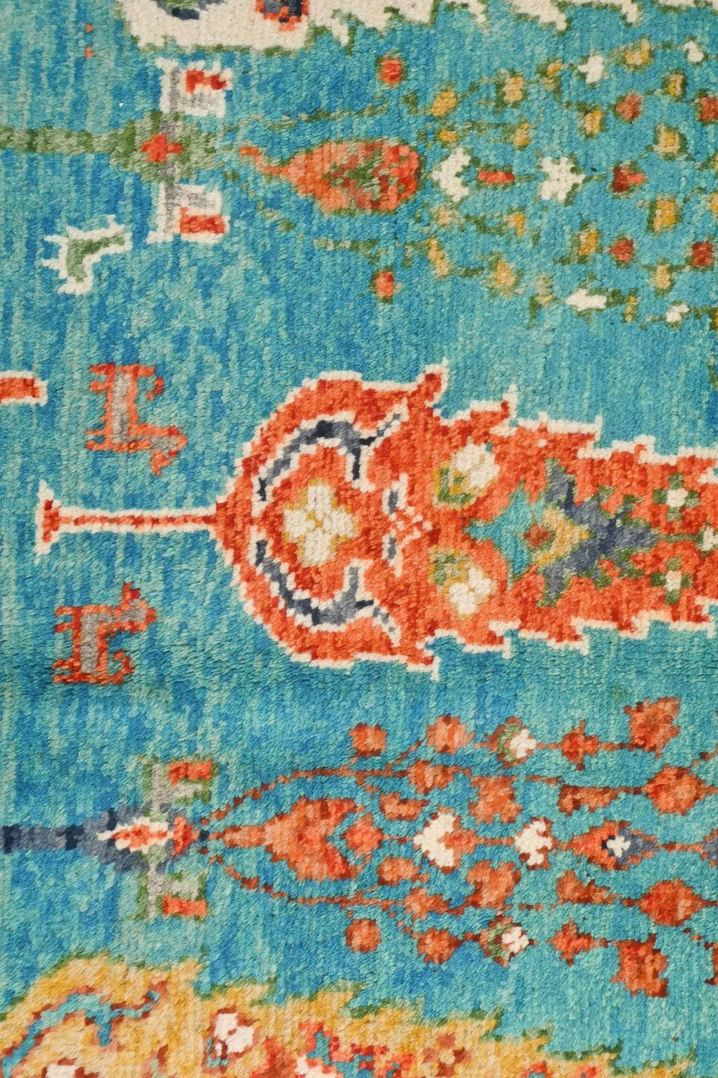 Hand knotted with hand spun wool and natural dyes.