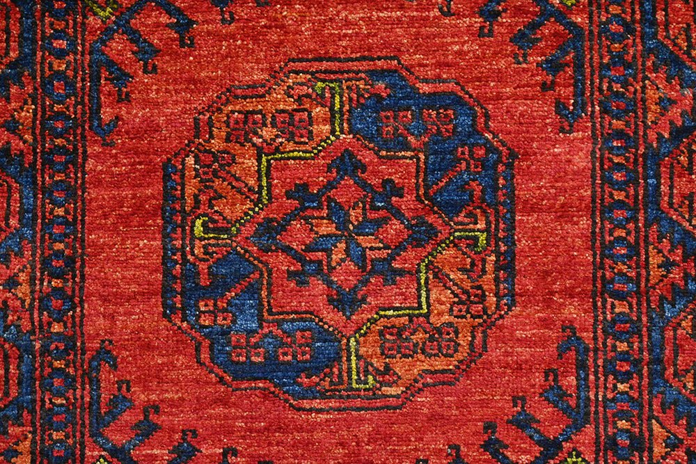 This is a very fine rug hand woven with lustrous wool and superb natural dyes. The traditional Ersari tribal weaving is decorated with an age old and beautiful arrangement of emblematic ‘güls’.