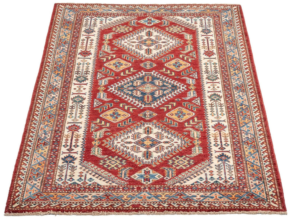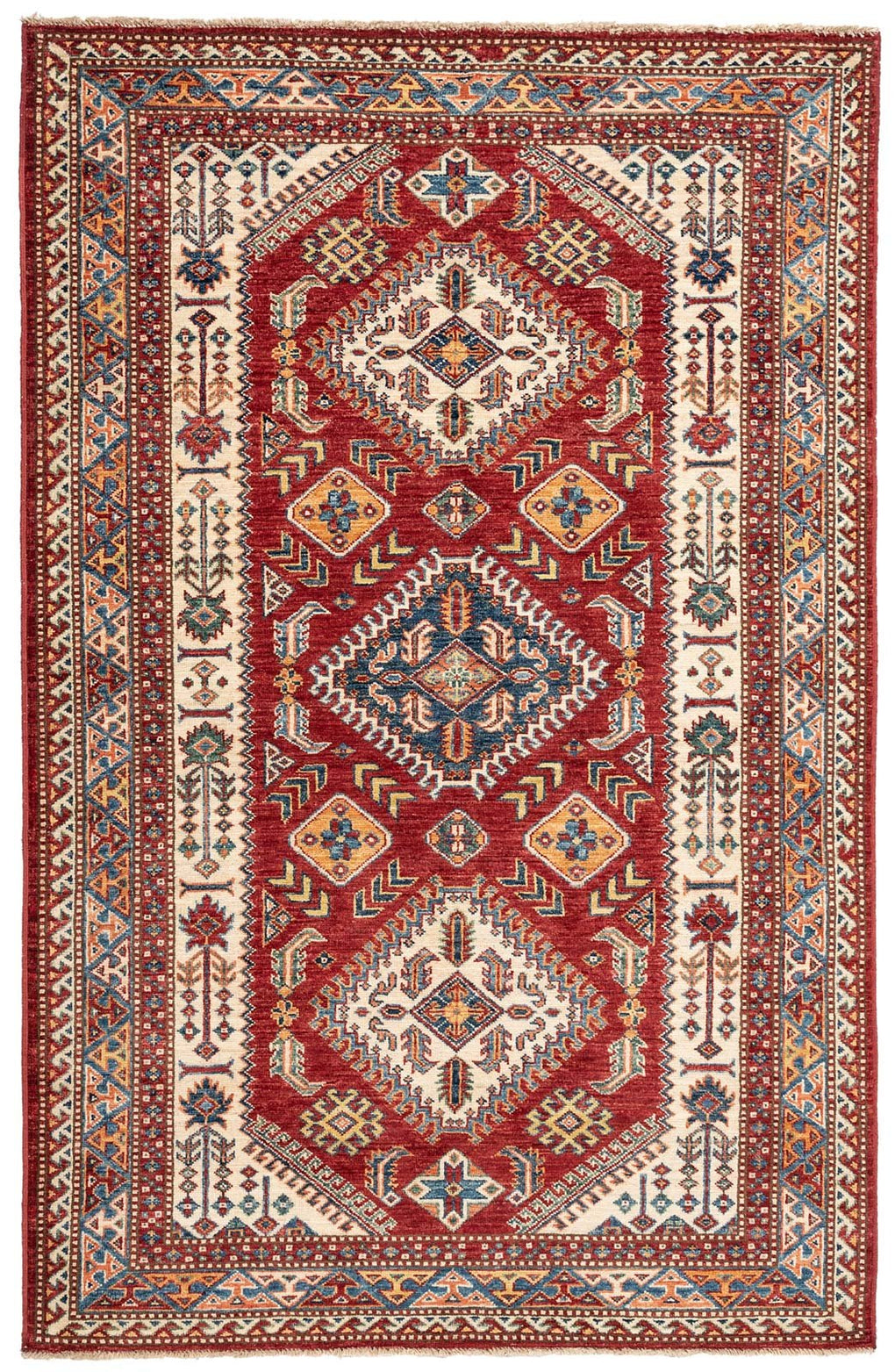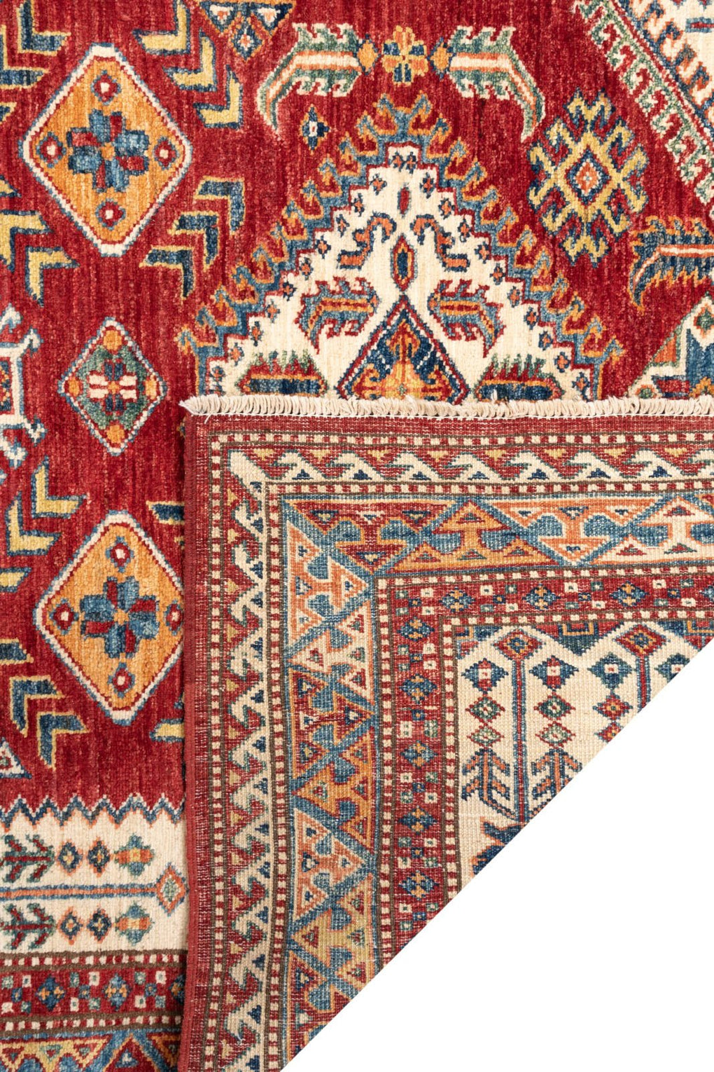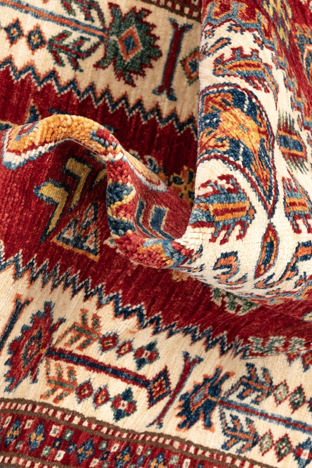 Lovely silky quality wool and finely knotted design convey the jewel like pattern Kazak rugs are known for.