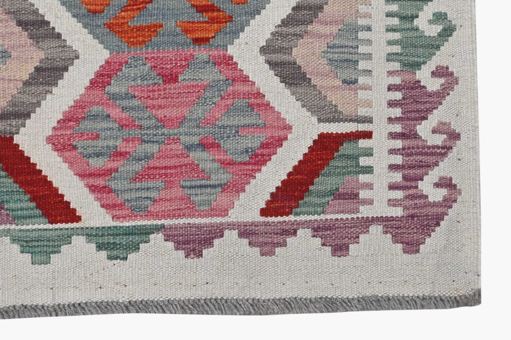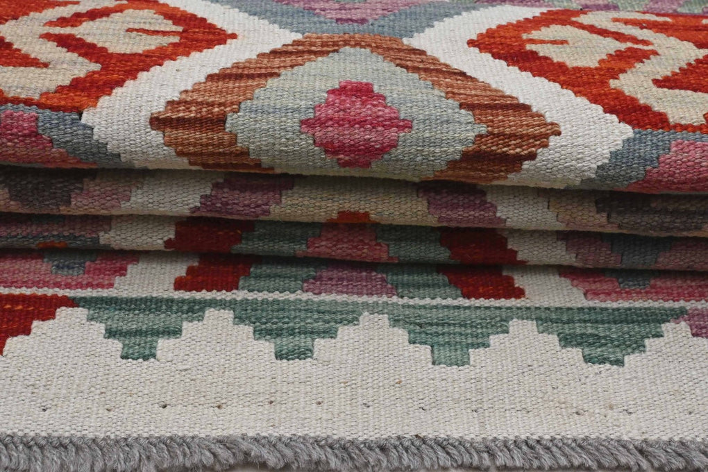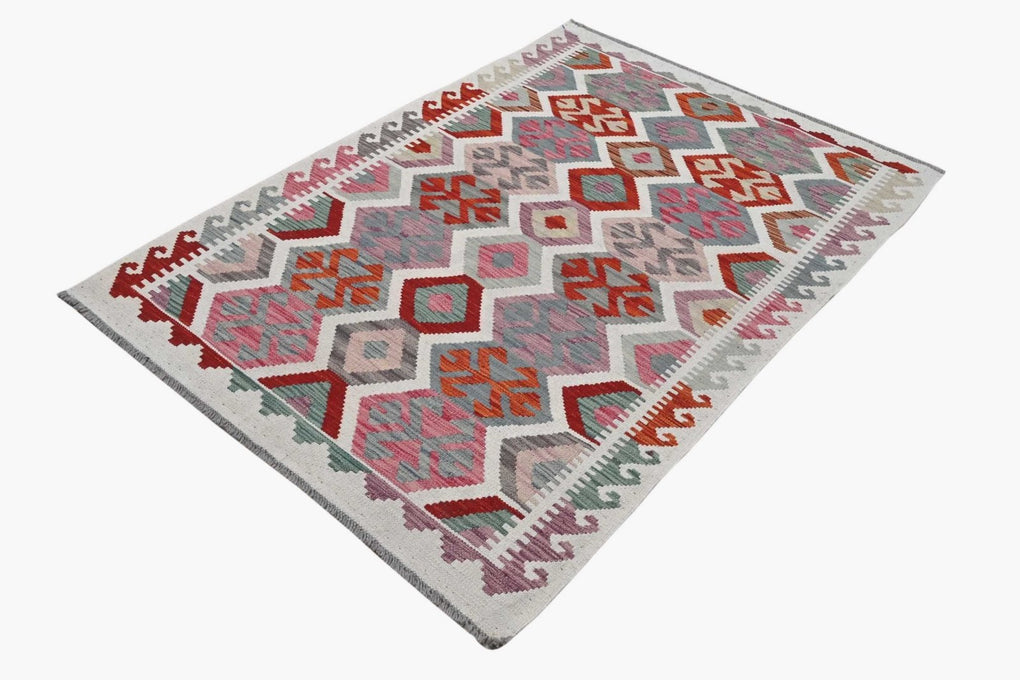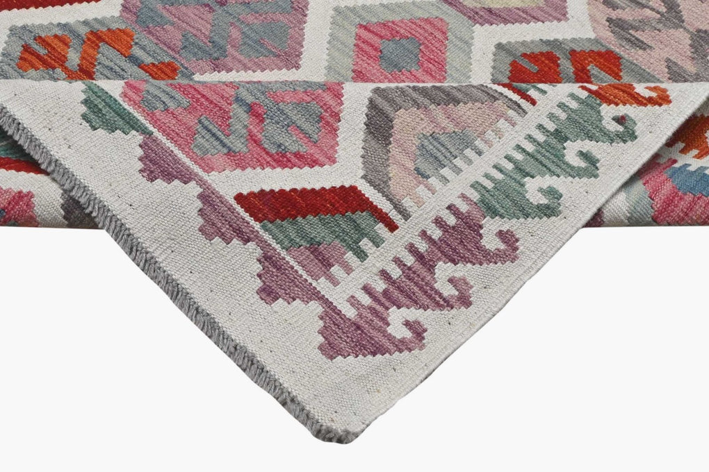 Classic trellis pattern has lively and well balanced colours. This hand woven kilim (means flat weave) comes from the northern region of Afghanistan. The dyes are all vegetable based and the wool is 100% hand spun.