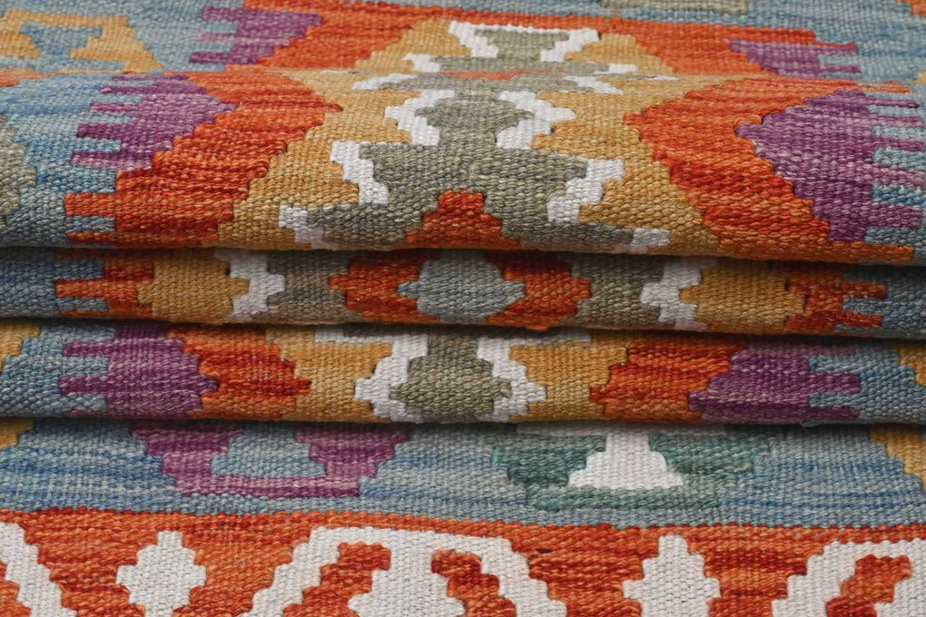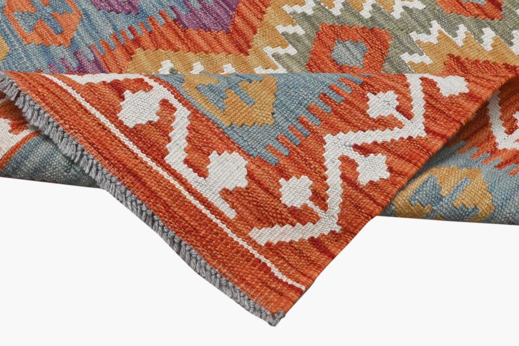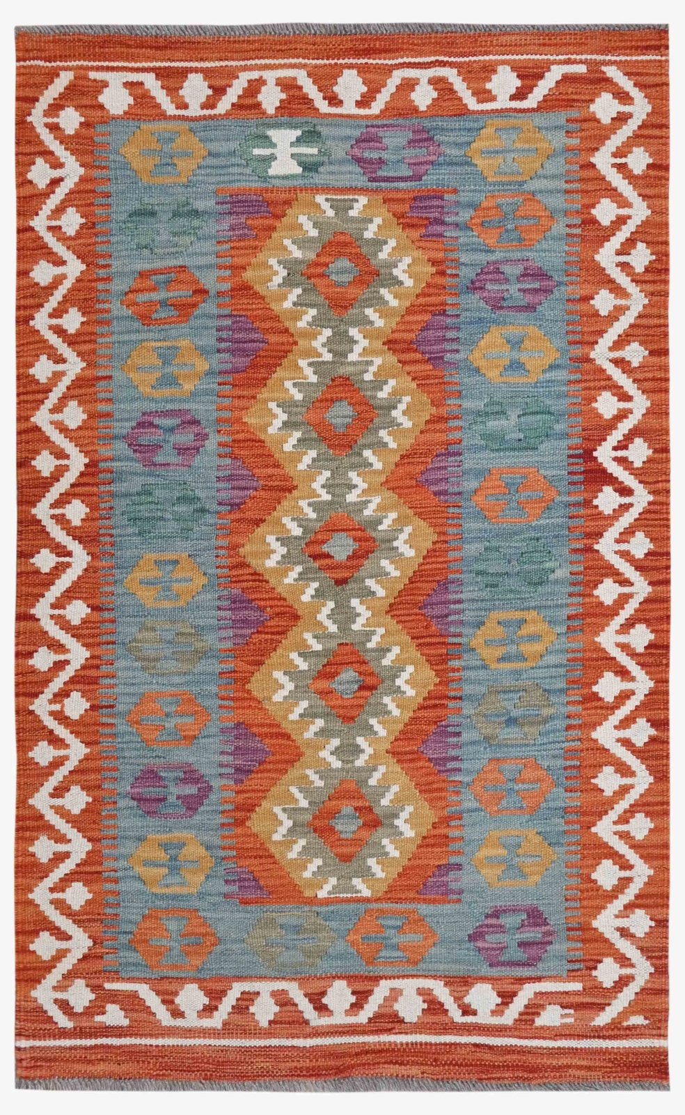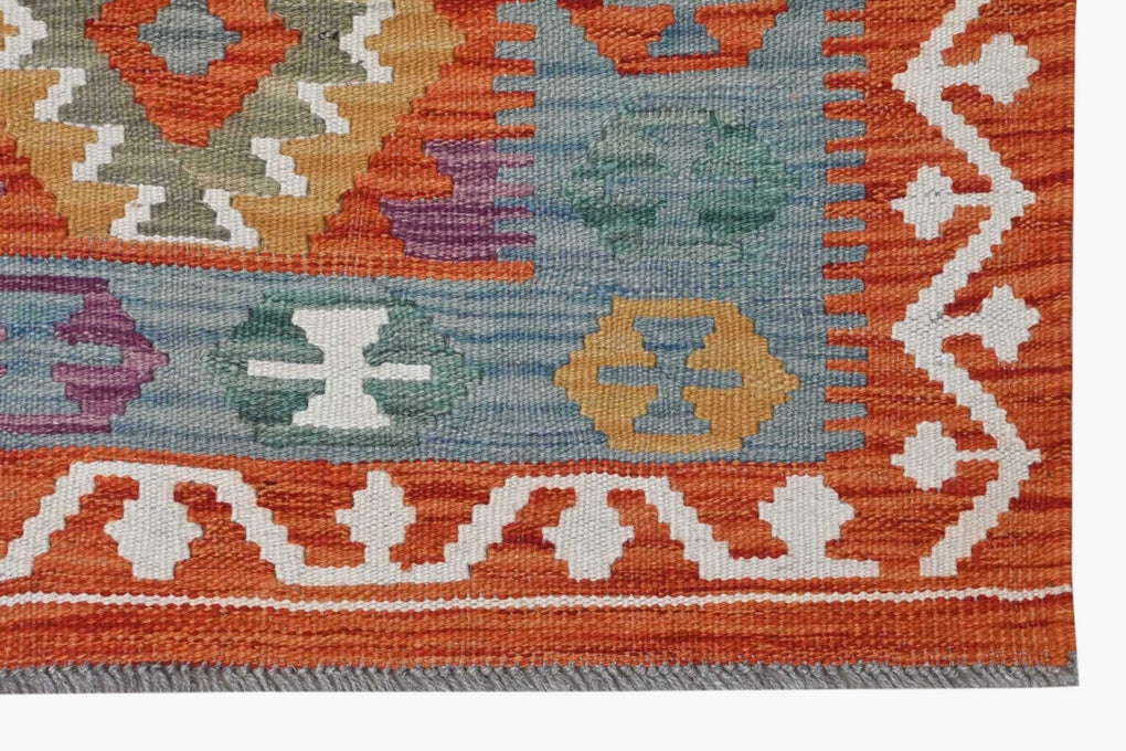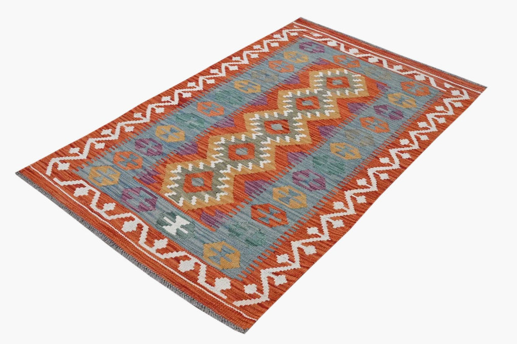 Classic trellis pattern has lively and well balanced colours. This hand woven kilim (means flat weave) comes from the northern region of Afghanistan. The dyes are all vegetable based and the wool is 100% hand spun.