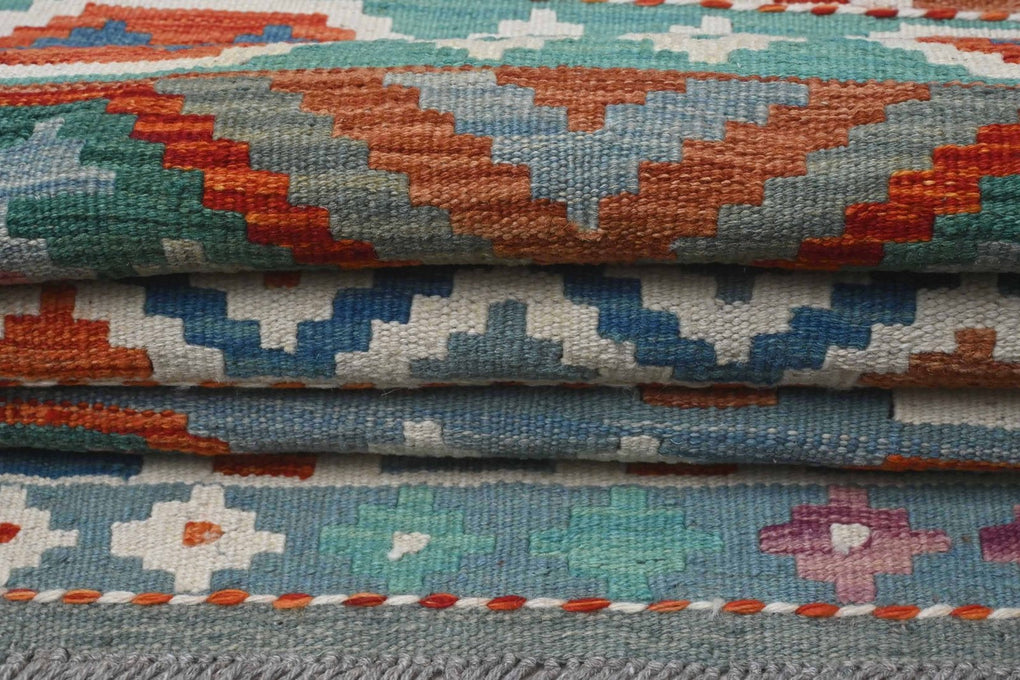 Classic trellis pattern has lively and well balanced colours. This hand woven kilim (means flat weave) comes from the northern region of Afghanistan. The dyes are all vegetable based and the wool is 100% hand spun.