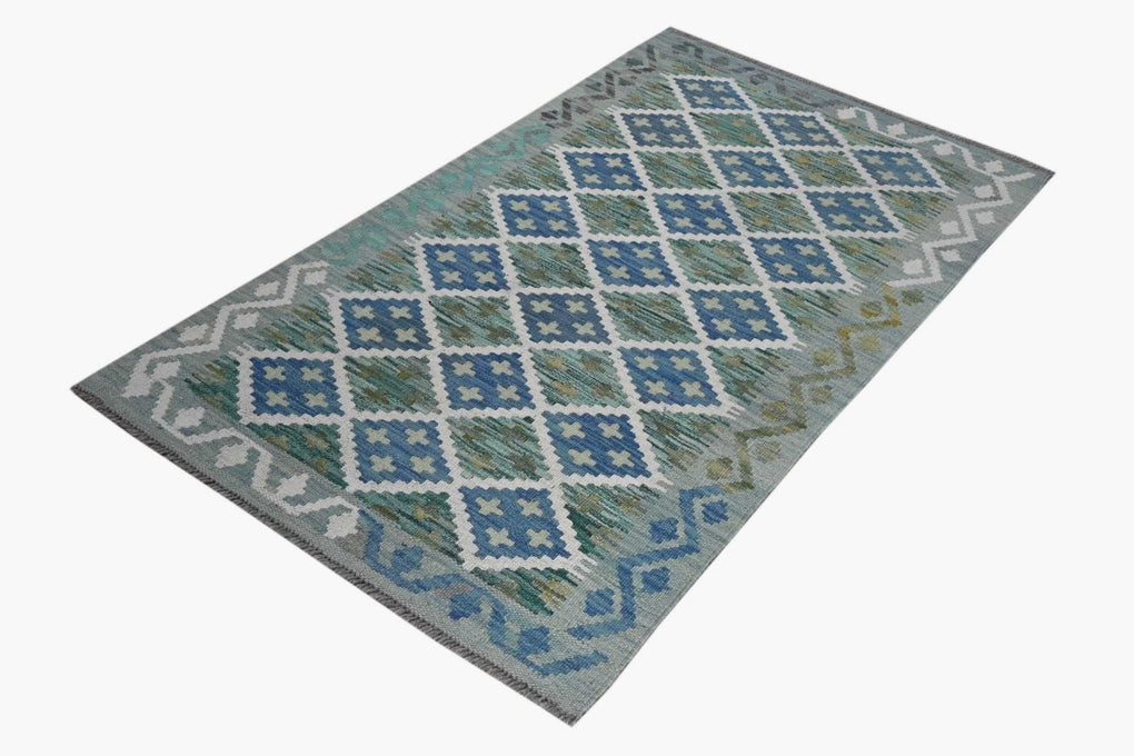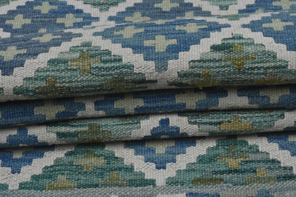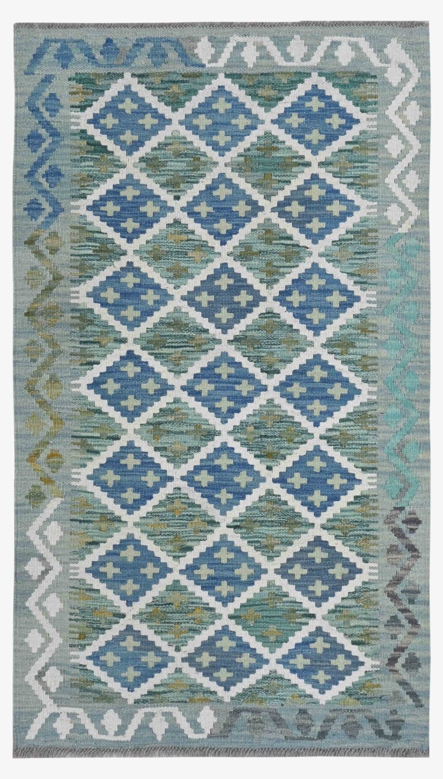 Classic trellis pattern has lively and well balanced colours. This hand woven kilim (means flat weave) comes from the northern region of Afghanistan. The dyes are all vegetable based and the wool is 100% hand spun.