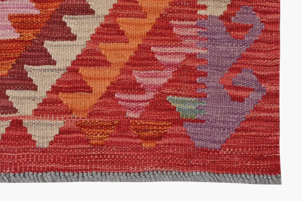 Classic trellis pattern has lively and well balanced colours. This hand woven kilim (means flat weave) comes from the northern region of Afghanistan. The dyes are all vegetable based and the wool is 100% hand spun.