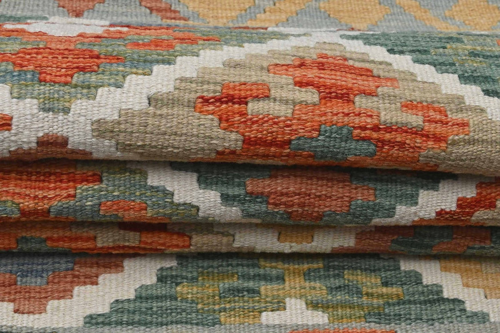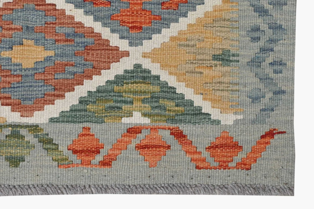 Classic trellis pattern has lively and well balanced colours. This hand woven kilim (means flat weave) comes from the northern region of Afghanistan. The dyes are all vegetable based and the wool is 100% hand spun.