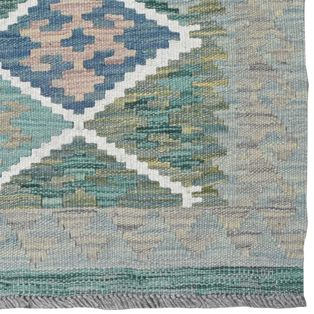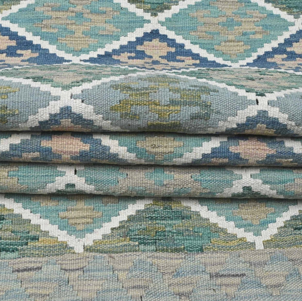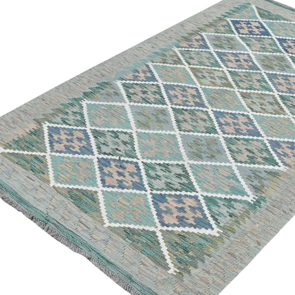 Classic trellis pattern has lively and well balanced colours. This hand woven kilim (means flat weave) comes from the northern region of Afghanistan. The dyes are all vegetable based and the wool is 100% hand spun.