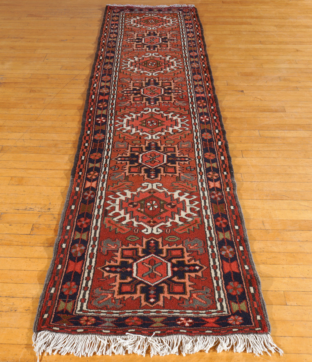 With their multiple colours and intricate decoration, Karajar rugs usually incorporate among the complex of elements alternating square and octagonal motifs.
