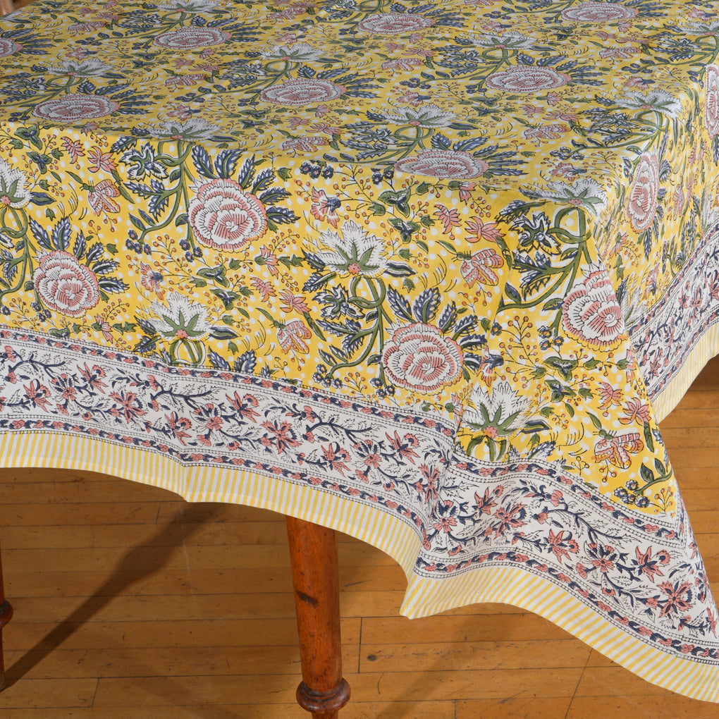 100% Cotton hand block printed Table Cloth, made by skilled artisans in Jaipur, Rajasthan, N. W. India.