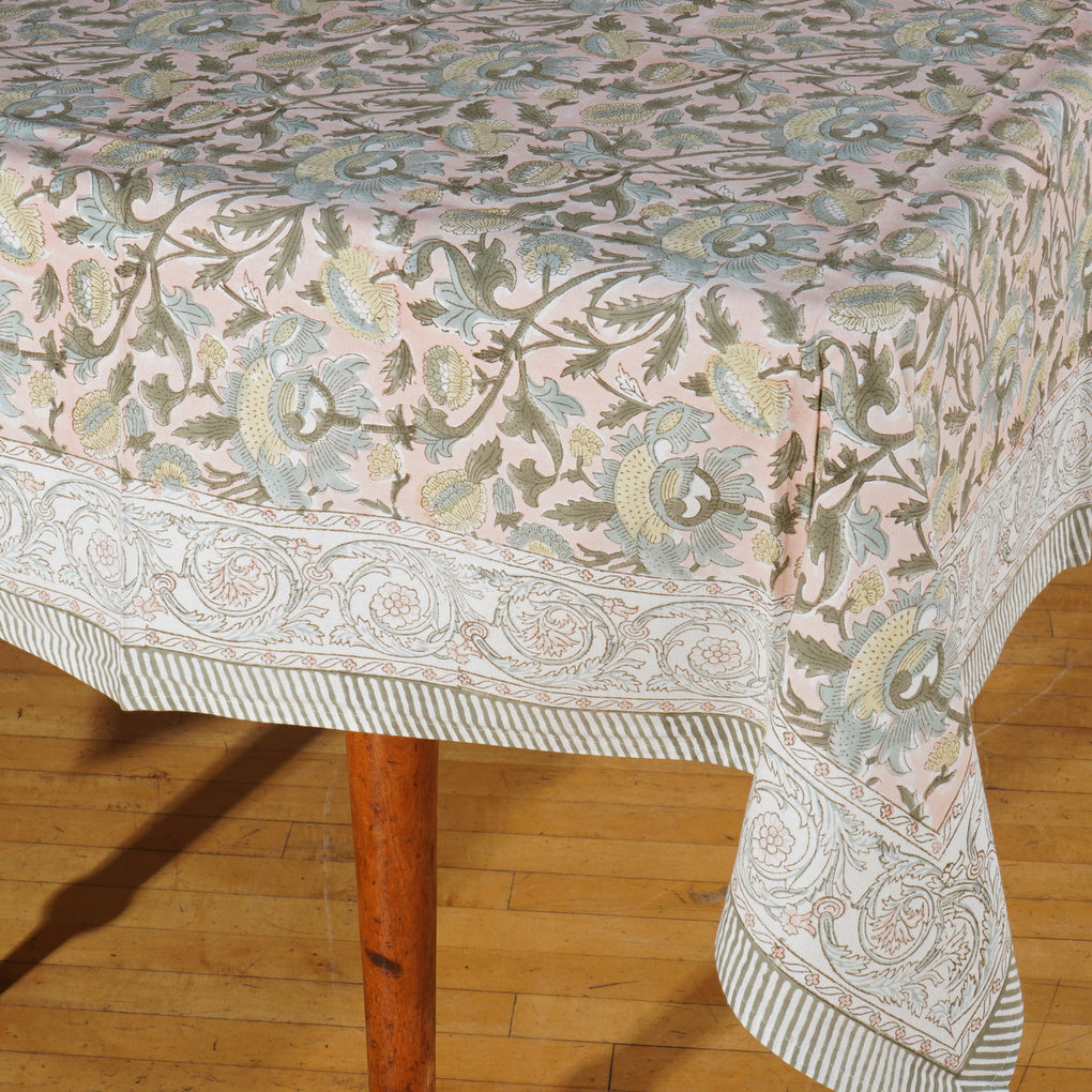 100% Cotton hand block printed Table Cloth, made by skilled artisans in Jaipur, Rajasthan, N. W. India.