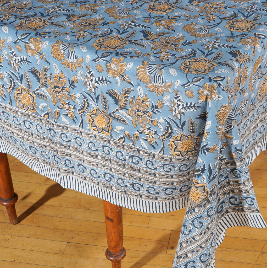 100% Cotton hand block printed Table Cloth, made by skilled artisans in Jaipur, Rajasthan, N. W. India.