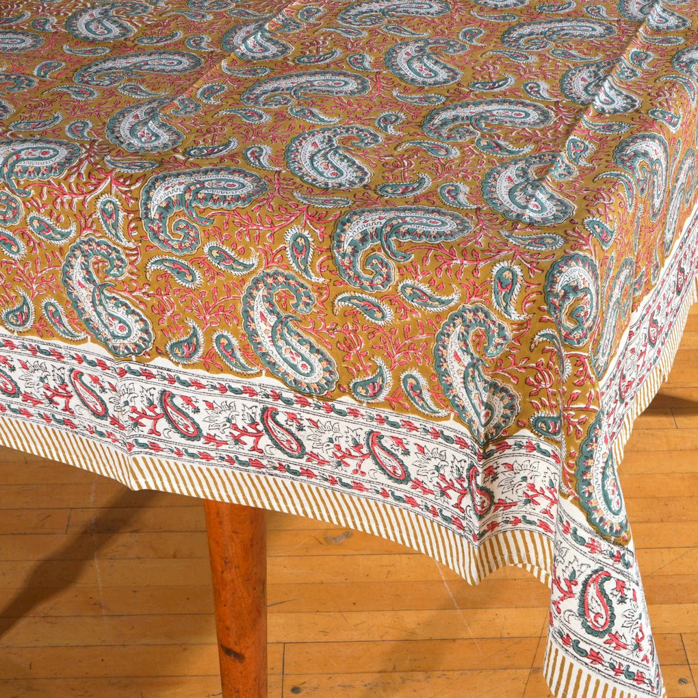 100% Cotton hand block printed Table Cloth, made by skilled artisans in Jaipur, Rajasthan, N. W. India.