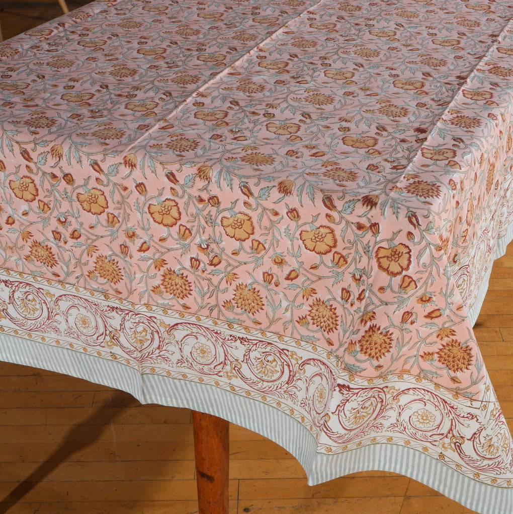 100% Cotton hand block printed Table Cloth, made by skilled artisans in Jaipur, Rajasthan, N. W. India.