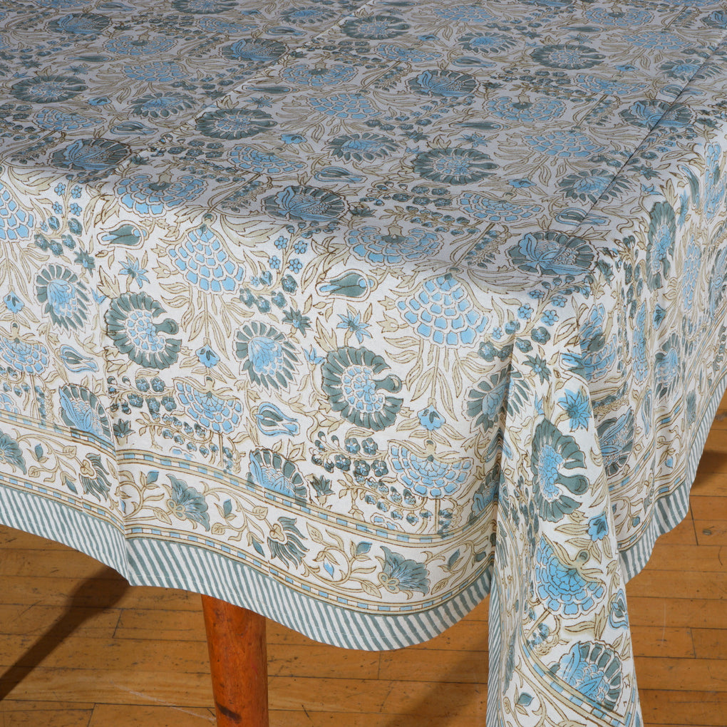 100% Cotton hand block printed Table Cloth, made by skilled artisans in Jaipur, Rajasthan, N. W. India.