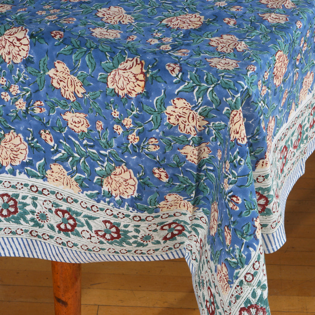 100% Cotton hand block printed Table Cloth, made by skilled artisans in Jaipur, Rajasthan, N. W. India.
