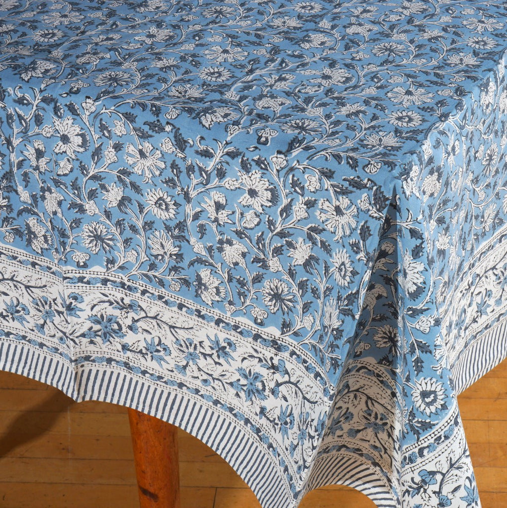 100% Cotton hand block printed Table Cloth, made by skilled artisans in Jaipur, Rajasthan, N. W. India.