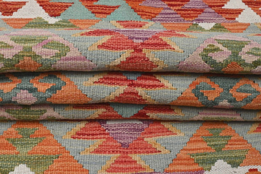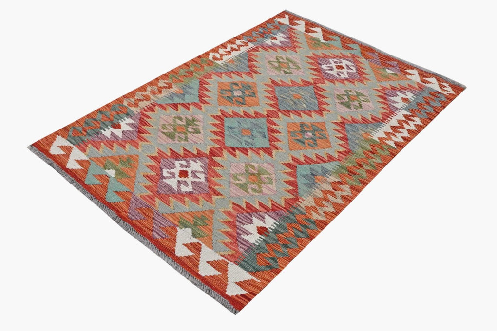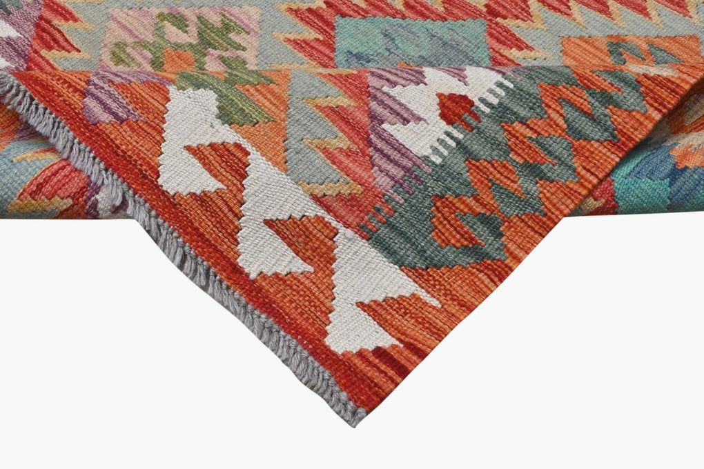 Classic trellis pattern has lively and well balanced colours. This hand woven kilim (means flat weave) comes from the northern region of Afghanistan. The dyes are all vegetable based and the wool is 100% hand spun.
